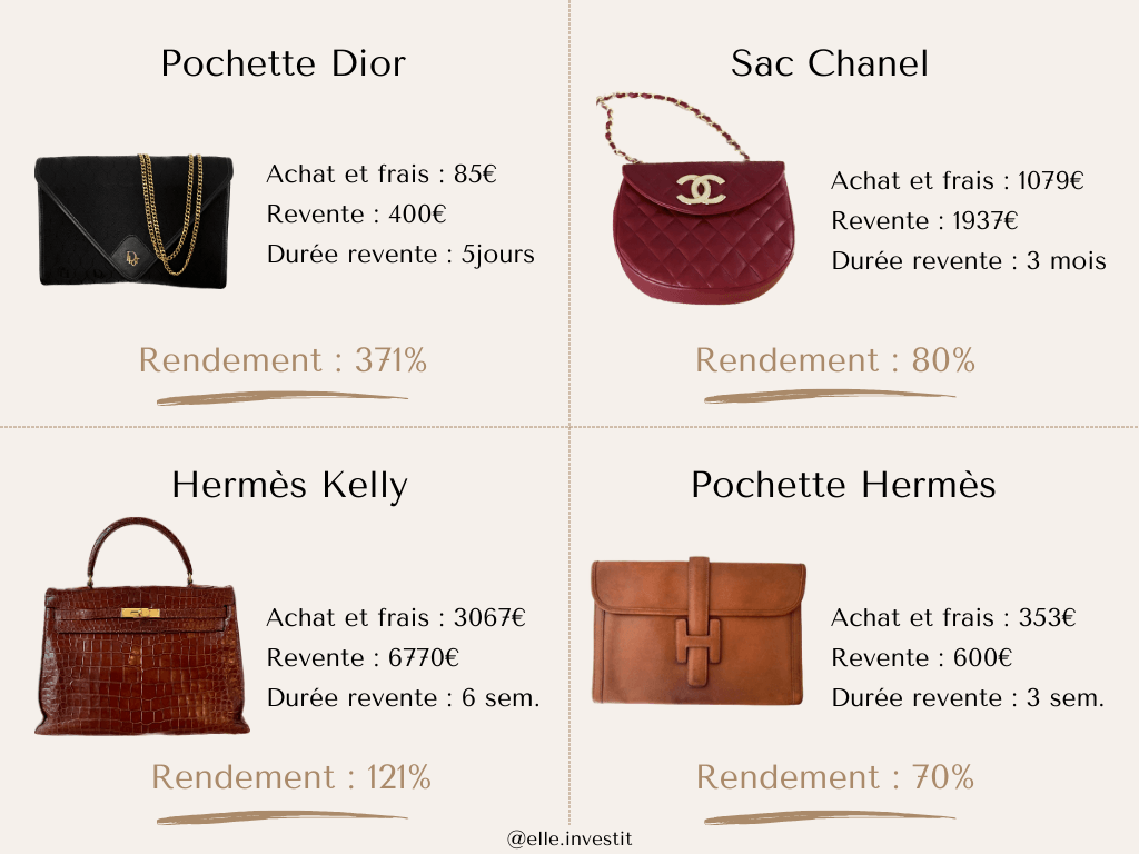 Je vous partage en détails toutes les informations à ce sujet dans mon article “Gagner de l’argent en investissant dans des sacs de luxe : mythe ou réalité”.
